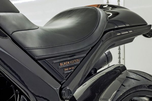 Die hohe Leichtbau-Kompetenz der 3C-Carbon-Gruppe zeigt sich bei den VR6-Modellen unter anderem bei der komplexen Leichtbaukonstruktion des Fahrzeughecks. Es wurde komplett in Form eines hochstabilen, strukturellen Kohlefaserunterbaus umgesetzt. Die Sitzbank wartet mit echtem Sattelleder inklusive geprägtem HOREX-Logo auf. Insgesamt bringt das neue Motorrad satte 35 Kilo weniger als der Ursprungsversion auf die Waage.